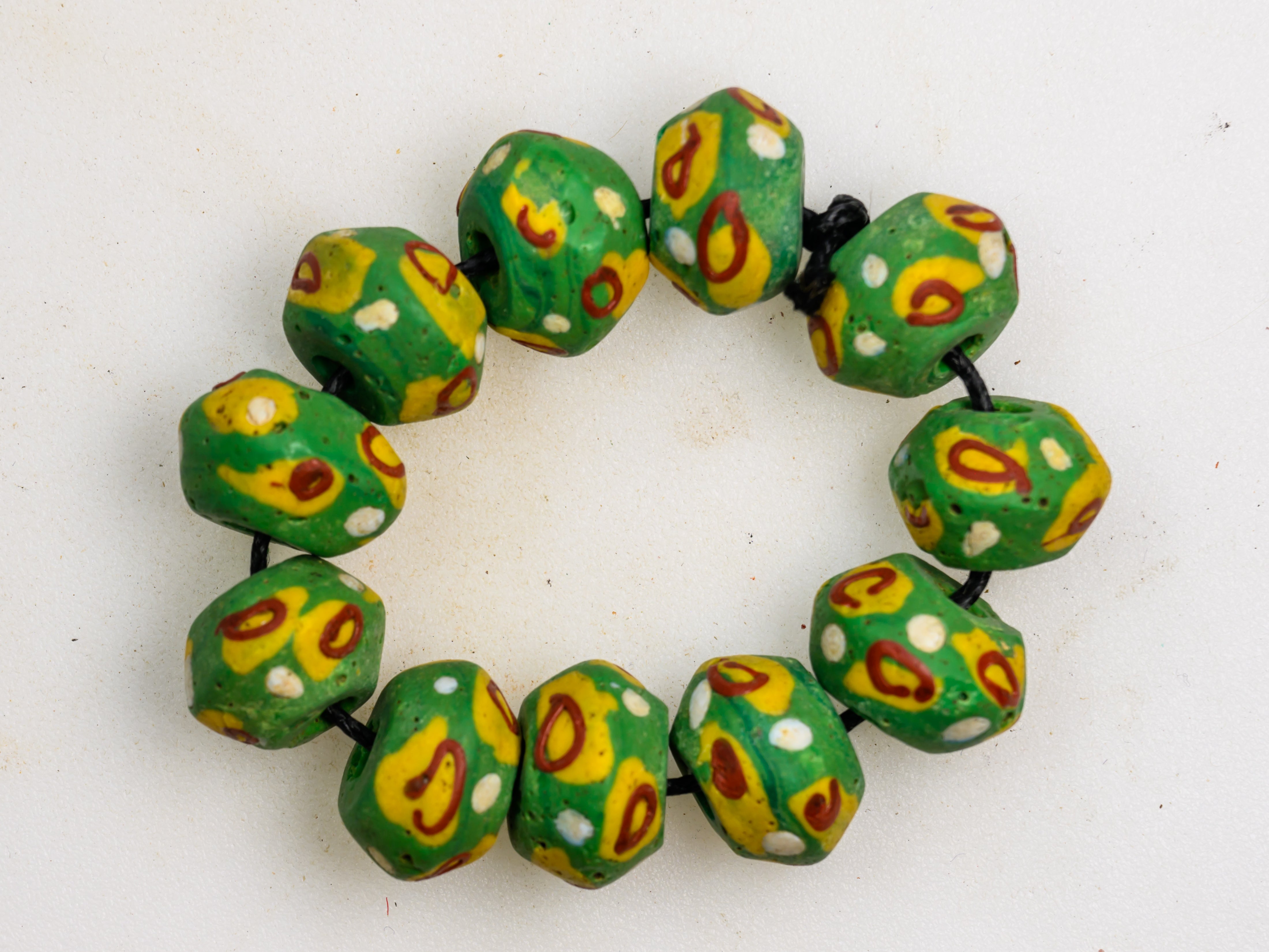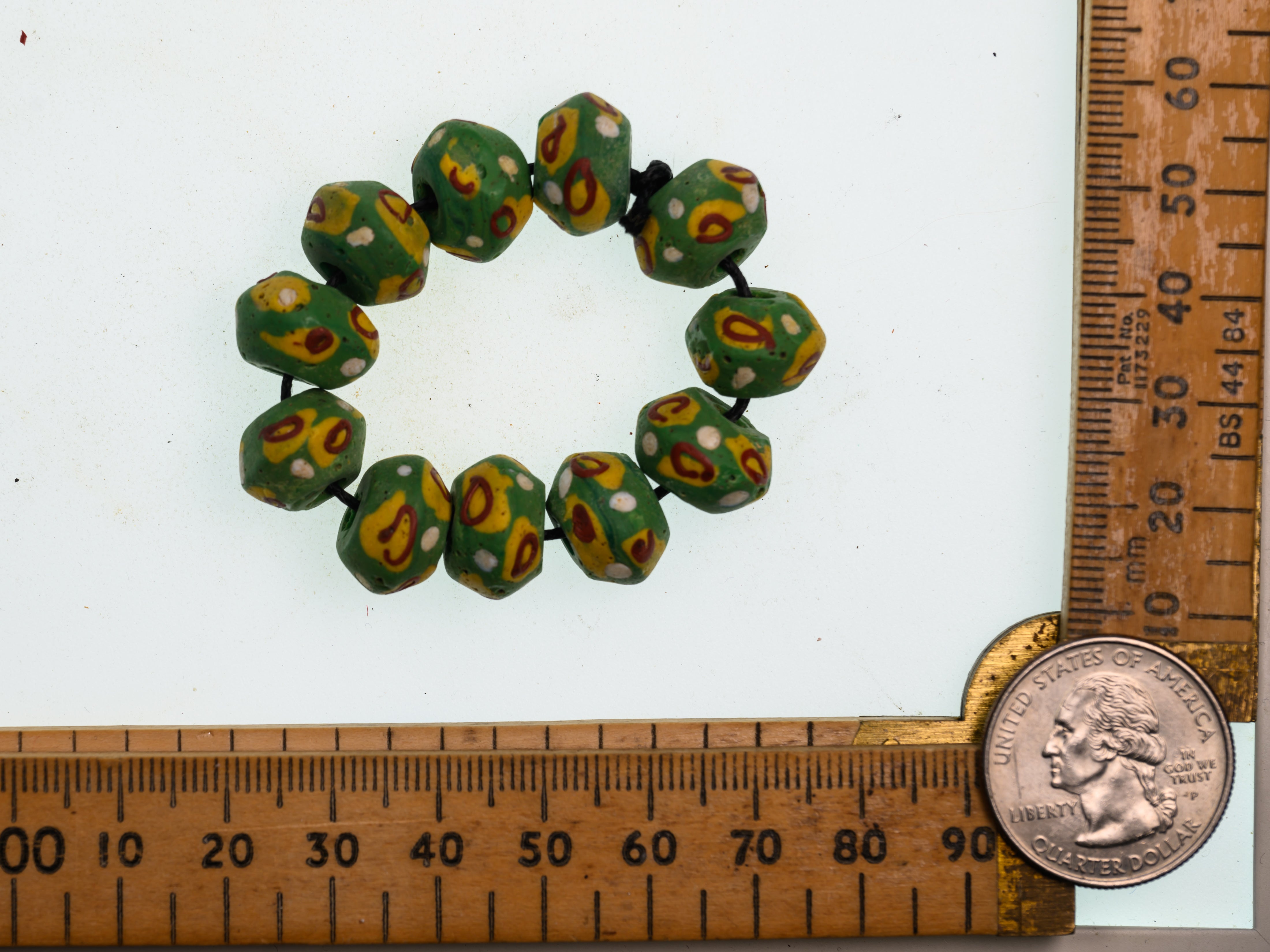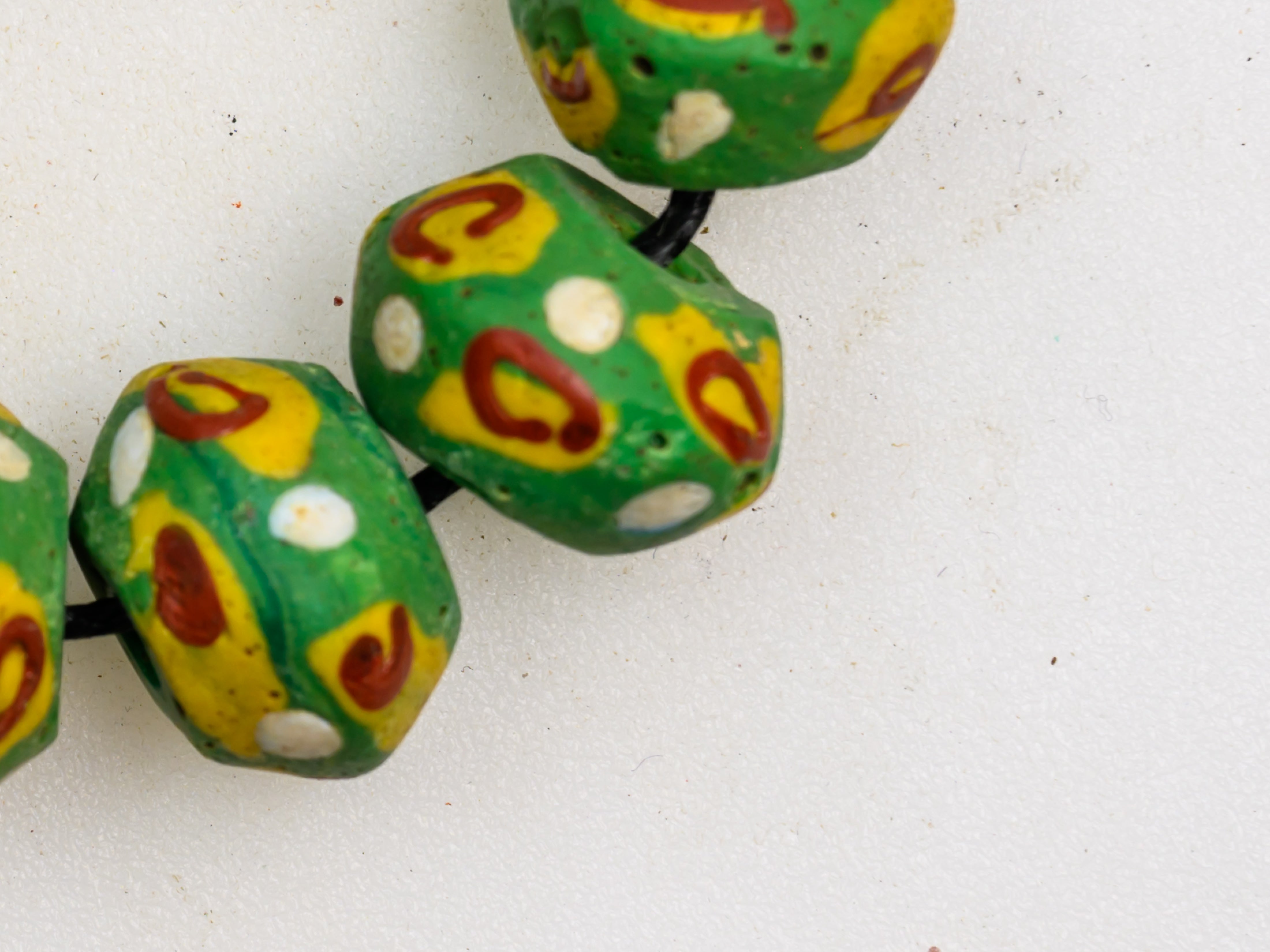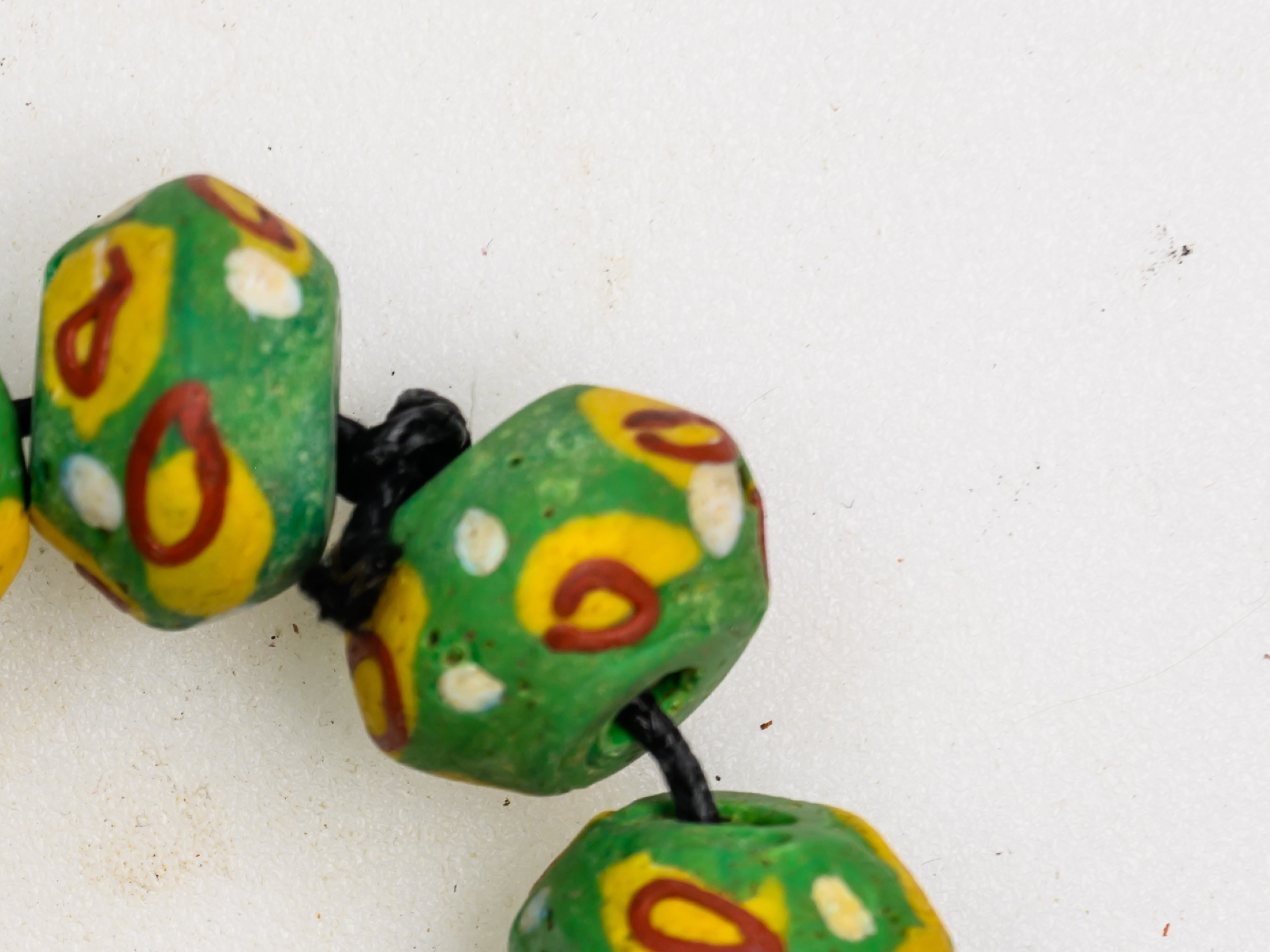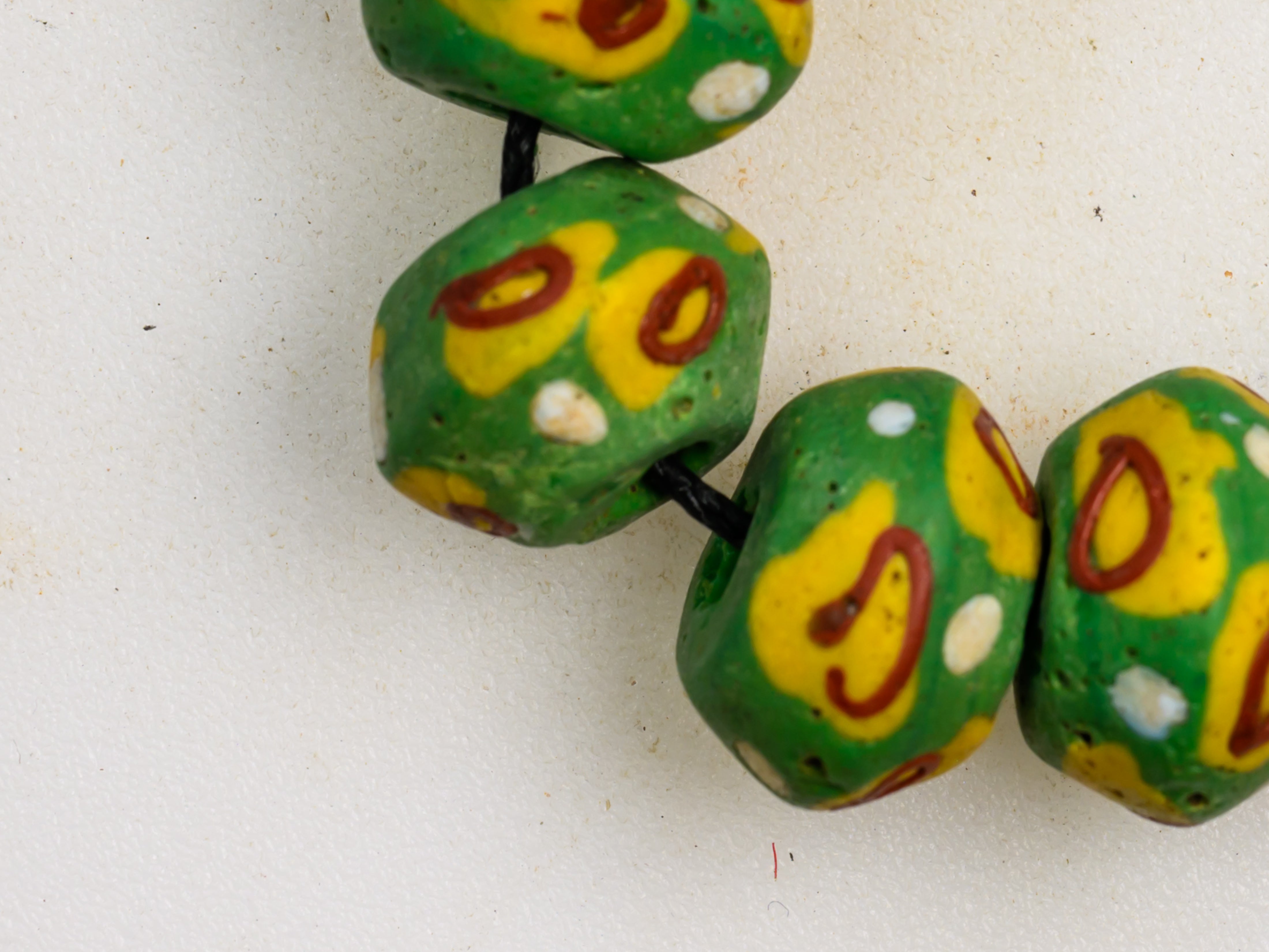 A small strand of rare green Venetian African Trade King Beads, dating from the mid to late 1800s through the early 1900s. These bicone beads are said to have been worn by tribal royalty, hence the name.