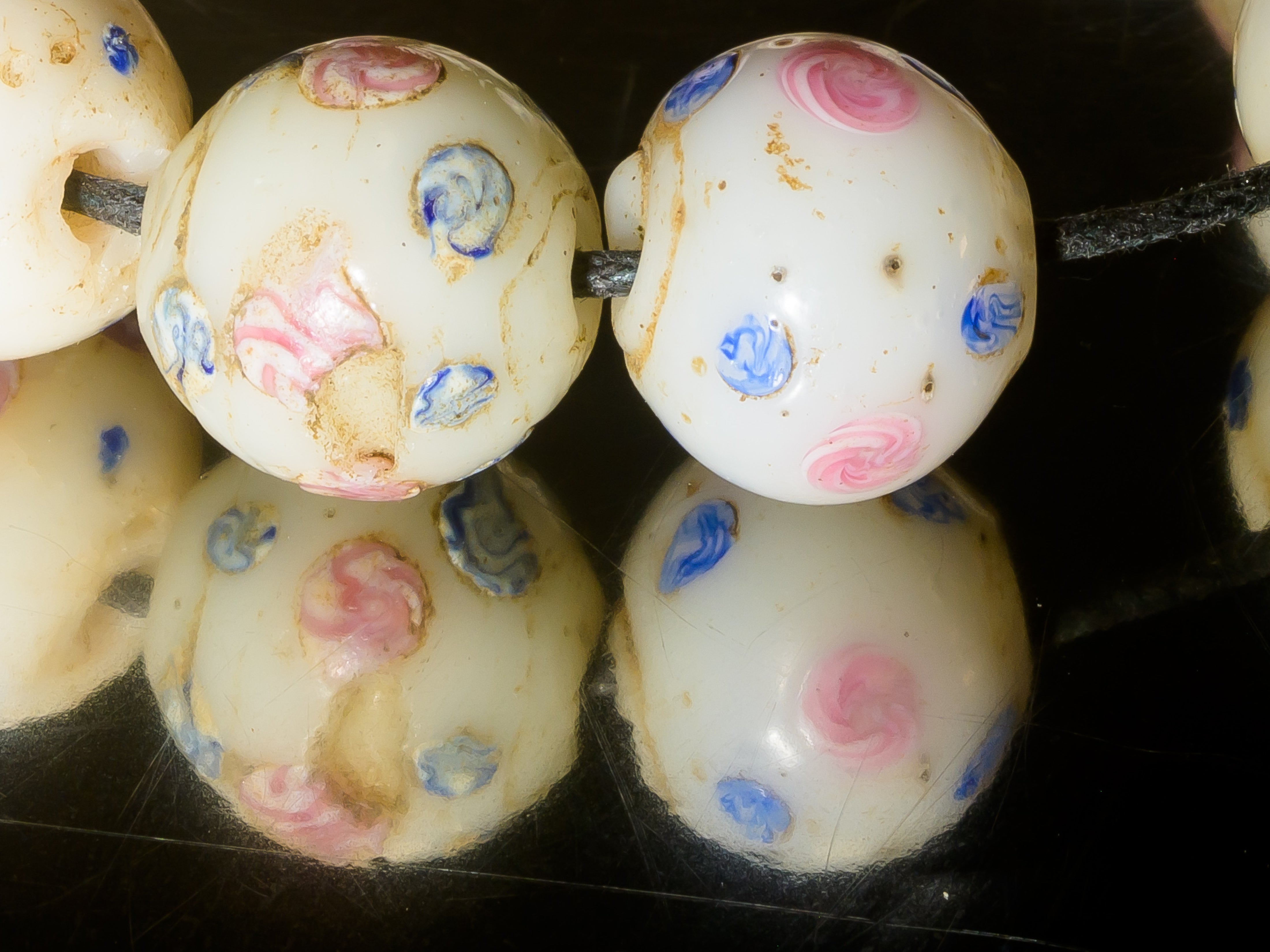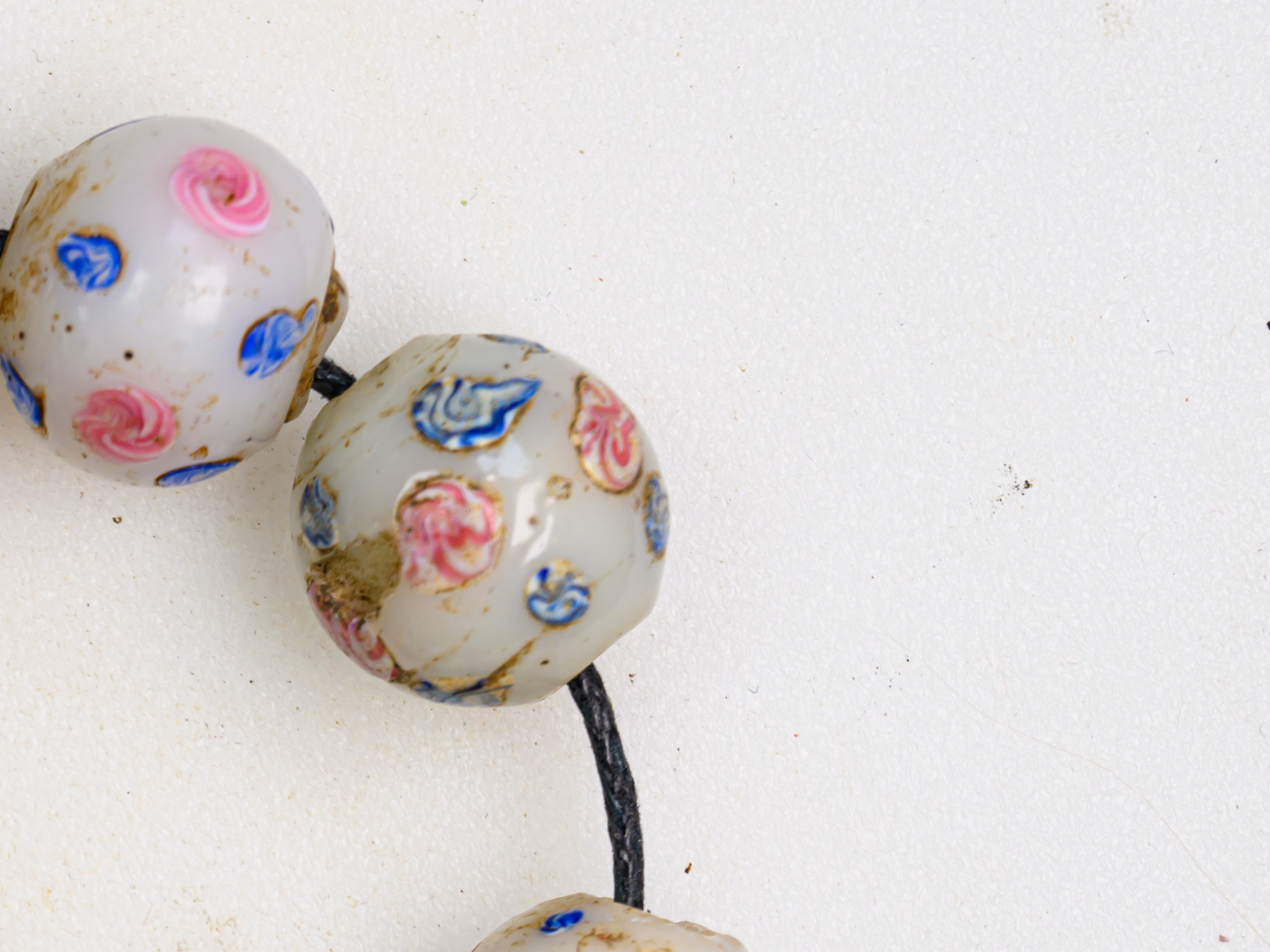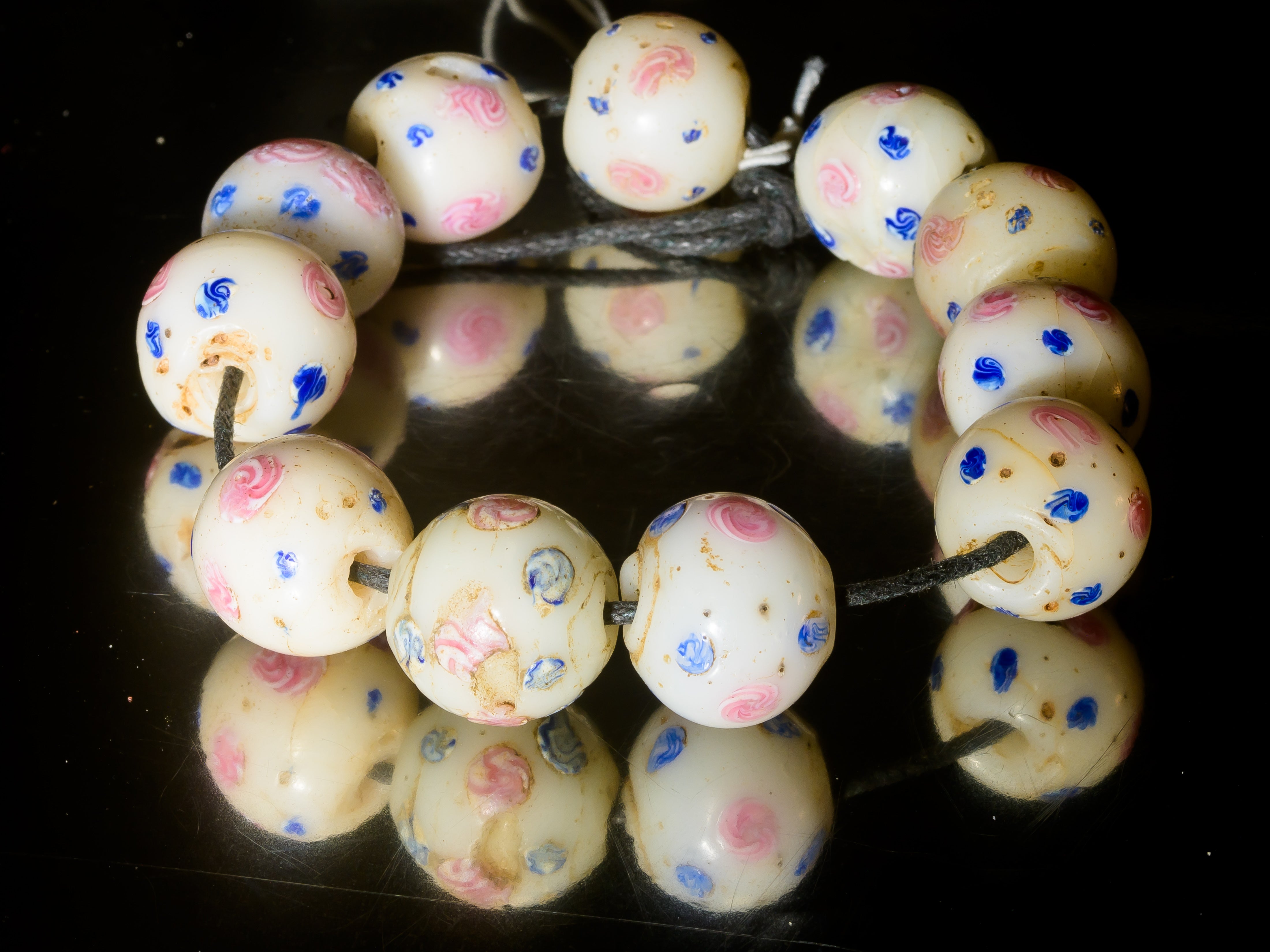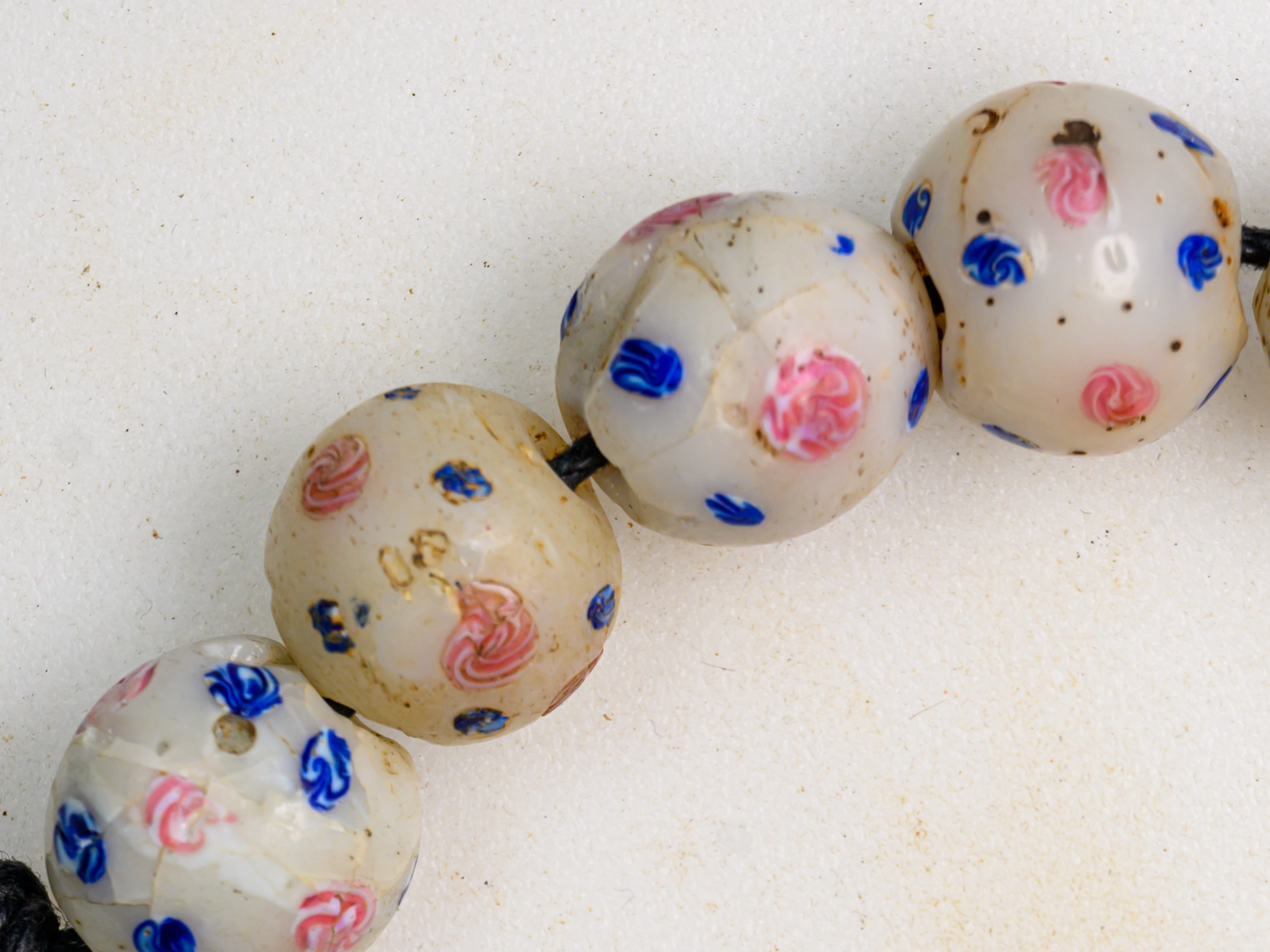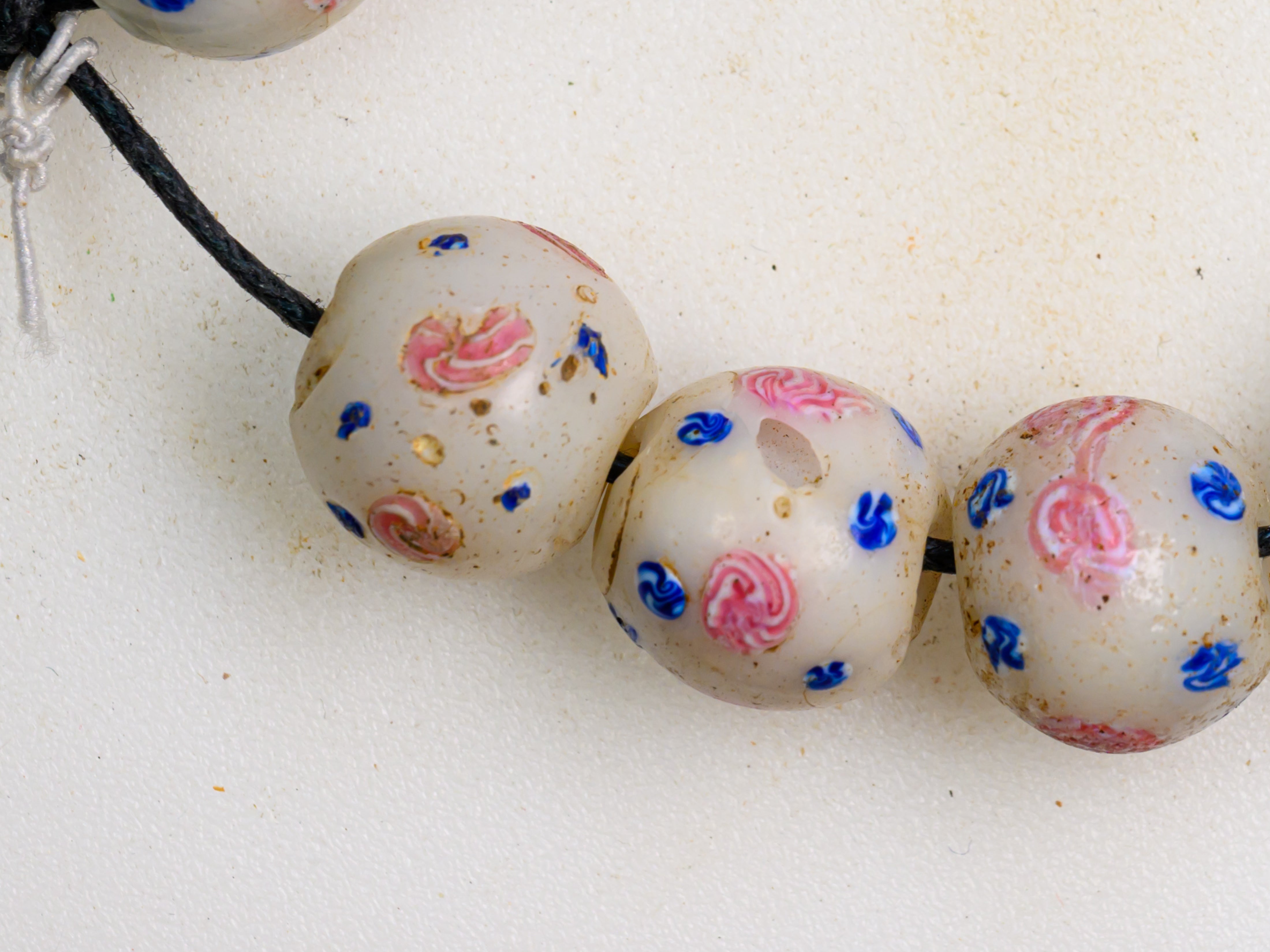 A Set of 10 Rare Venetian African Trade Fancy Beads in white, pink, and blue, dating to the late 1800s - early 1900s.